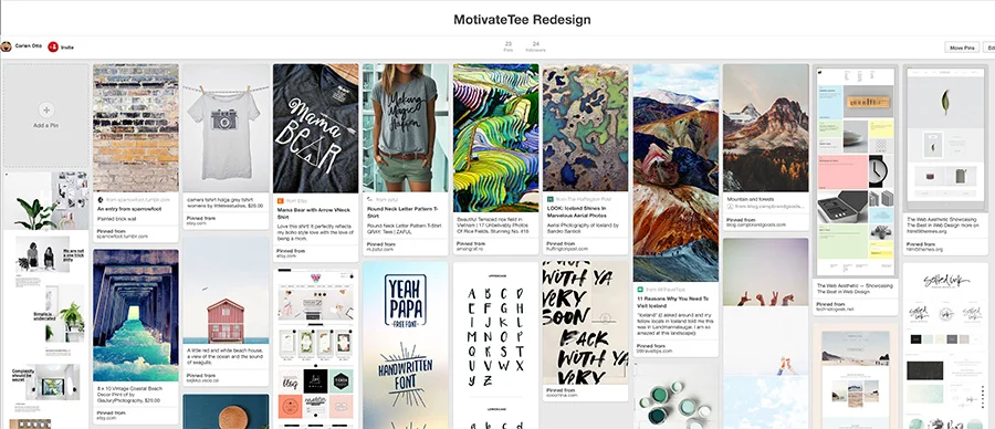 A collaborative collection of images and references that will eventually evolve into a product's visual style guide. Allows creatives to show clients and colleagues a proposed look for the product before investing too much time on it.