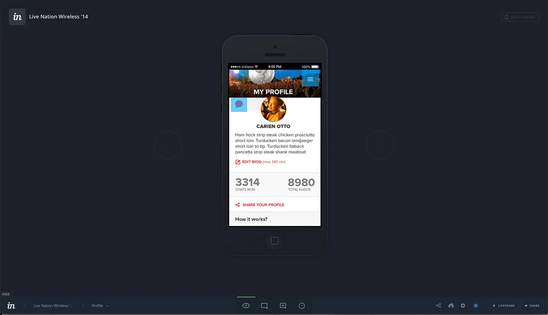 Hi Fidelity Prototype for Wireless Festival Vibe App in Invision