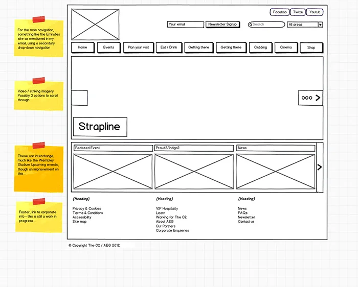 A visual guide that represents the page structure, as well as its hierarchy and key elements. Useful to discuss ideas with team members and clients, and to assist the work of designers and developers.