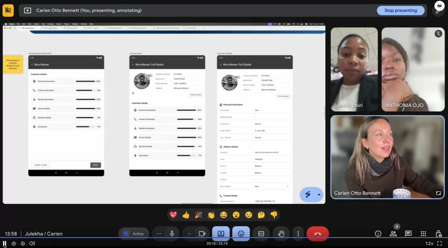 Discussing key connects using high fidelity wireframes, with the Malawi product team.
